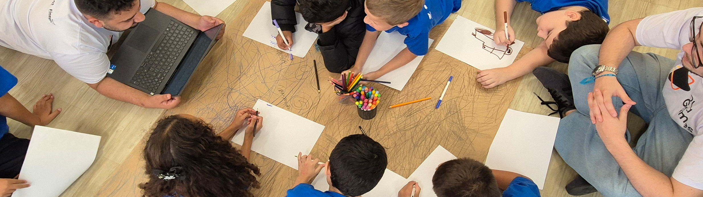 As ideias começam a ganhar forma. Com desenhos, protótipos e histórias, o grupo traduz suas criações para o papel, antes de migrar ao digital.
